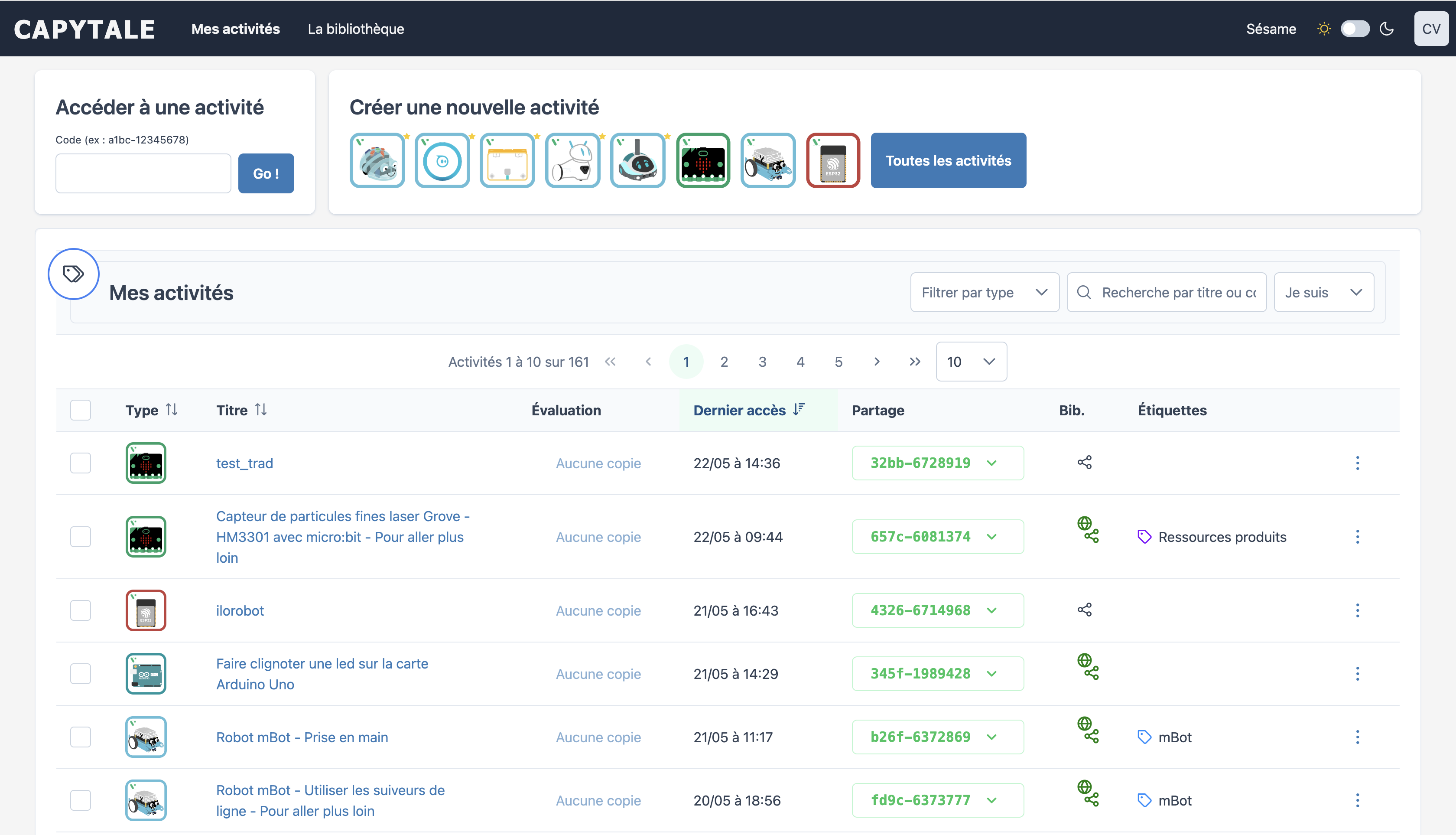 Partager avec la communauté vos activités dans la bibliothèque de Capytale.