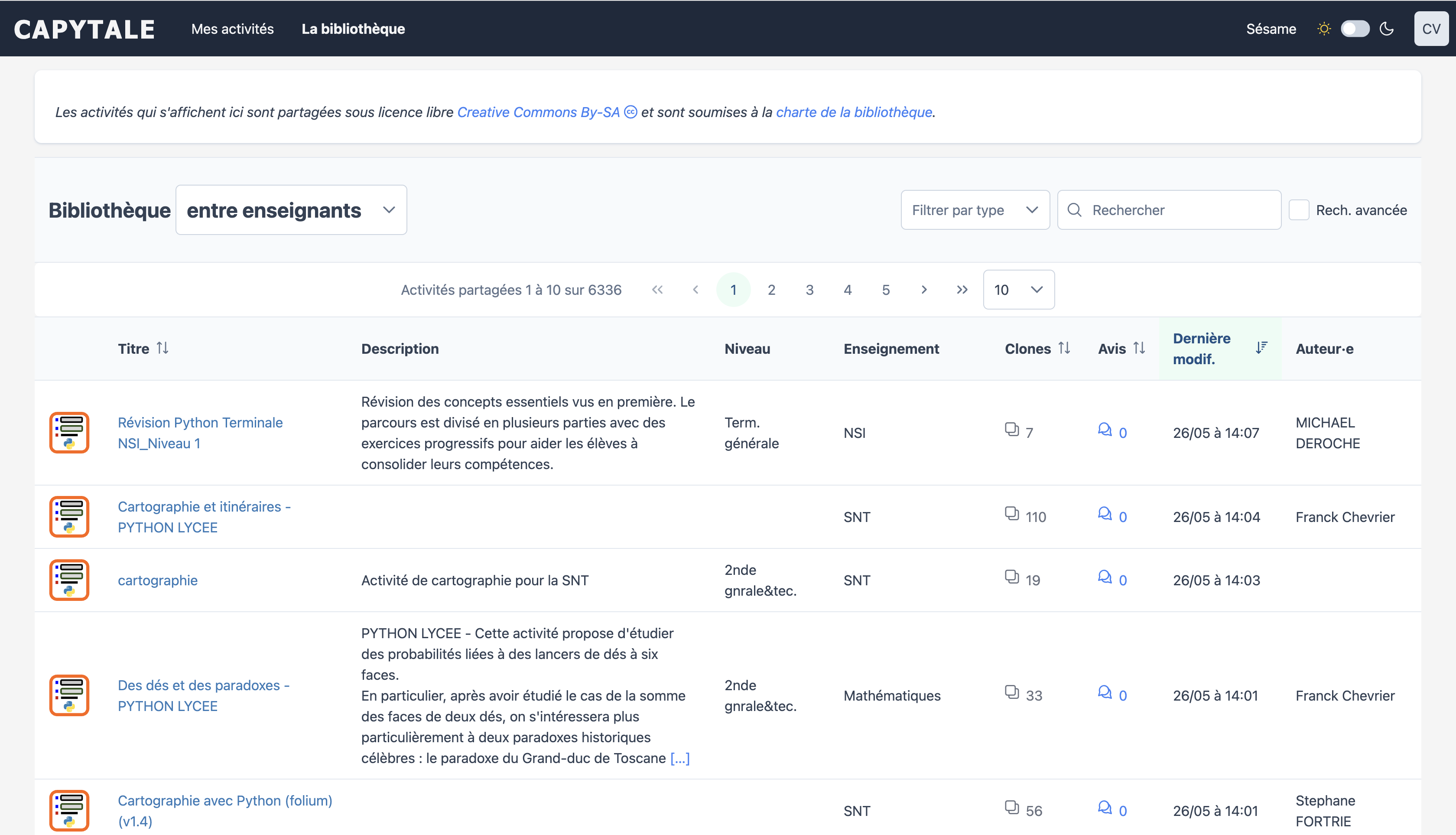 Adapter aux besoins des enseignants plusieurs milliers d’activités libres et réutilisable dans la bibliothèque de Capytale.